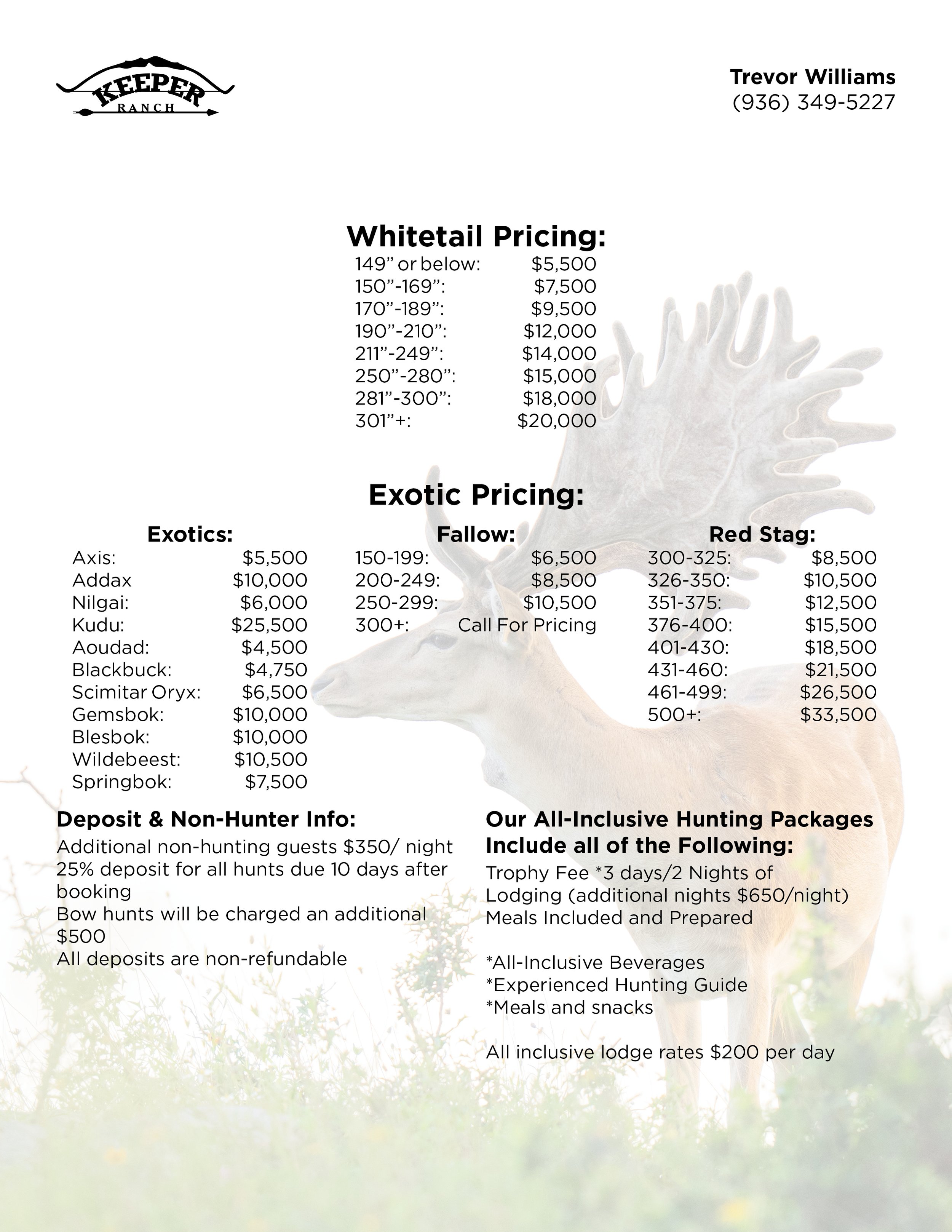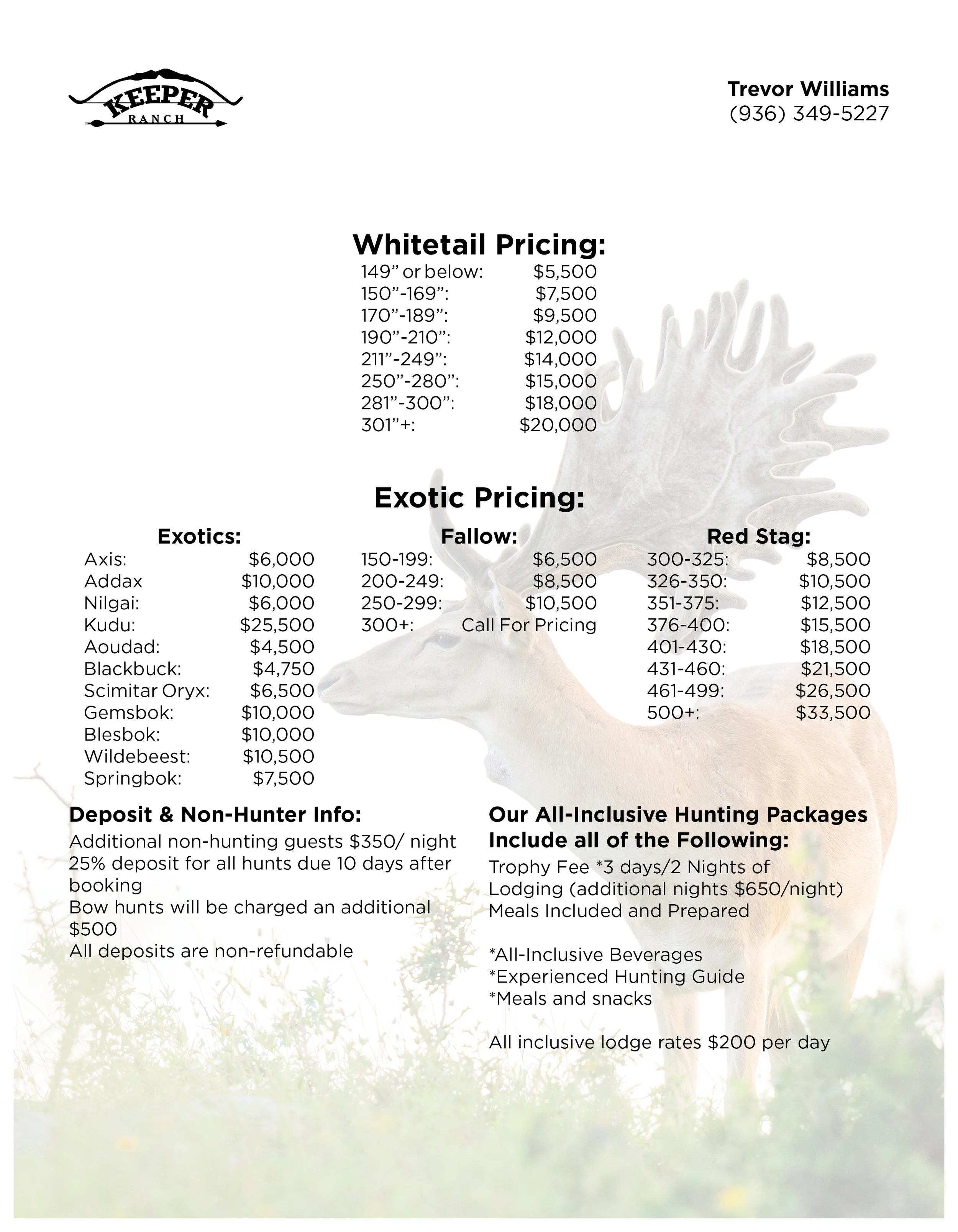 Keeper Ranch Hunting Prices - 2026/2027:
